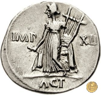 CLM339 Obverse: Testa di Ottaviano (Augusto) rivolta verso sinistra. Reverse: → IMP - CAESAR Un trofeo militare, con alla base un timone e un'ancora incrociati, posto sulla prua di una nave. | |