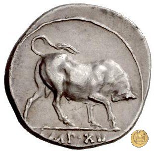 CLM307 Obverse: ![]() AVGVSTVS ![]() DIVI FTesta di Augusto, laureata, rivolta verso sinistra. Reverse: → IMP XII (esergo) Un toro, in posizione da incornata, rivolto verso sinistra. | |