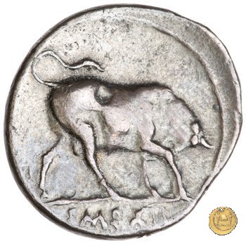 CLM305 Obverse: ![]() AVGVSTVS ![]() DIVI FTesta di Augusto, laureata, rivolta verso sinistra. Reverse: → IMP XII (esergo) Un toro, in posizione da incornata, rivolto verso destra. | |