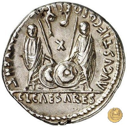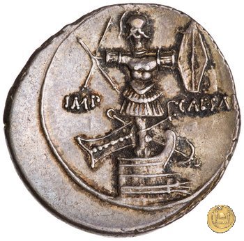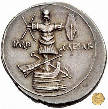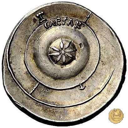 CLM347 Obverse: → IMP Testa di Marte, con elmo, rivolta verso destra. Reverse: → CAESAR Uno scudo circolare iscritto, con al centro una stella a otto raggi e posto al di sopra di una lancia e una spada incrociate. | |