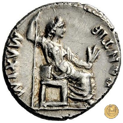 CLM322 Obverse: ![]() CAESAR AVGVSTVS ![]() DIVI F PATER PATRIAETesta di Augusto, laureata, rivolta verso destra. Reverse: ![]() PONTIF ![]() MAXIMUna figura femminile, drappeggiata, seduta verso destra su di una sedia dal basso schienale; nella mano destra tiene un scettro in posizione verticale, nella sinistra, un ramo. | |