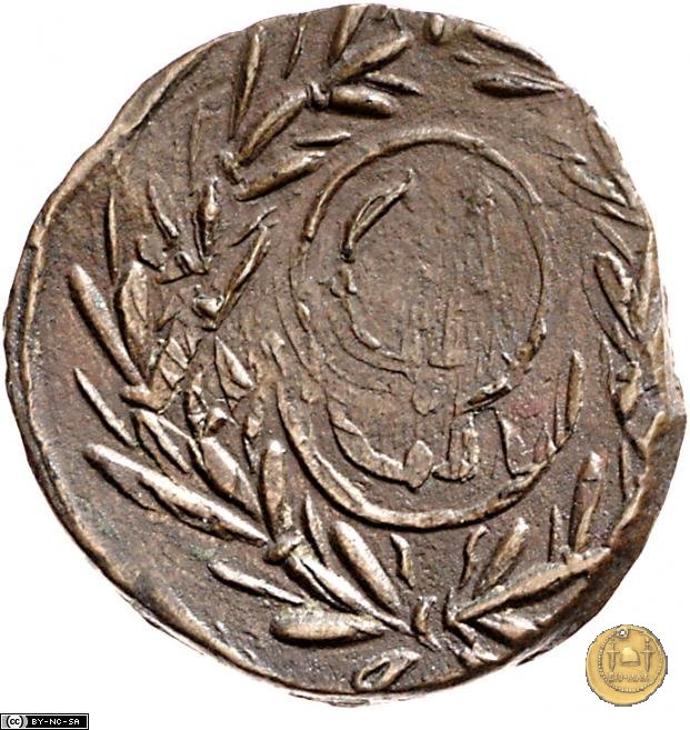 La legenda, circondata da una linea puntinata, all'interno di una corona d'alloro e rostri.