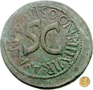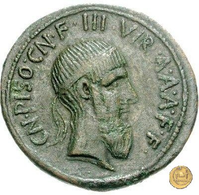 CLM660 Obverse: ↻ CAESAR AVGVST PONT MAX TRIBVNIC POT Testa di Augusto rivolta verso sinistra. Reverse: ↻ CN PISO CN F IIIVIR A A A F F; → S C • | |