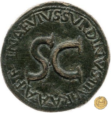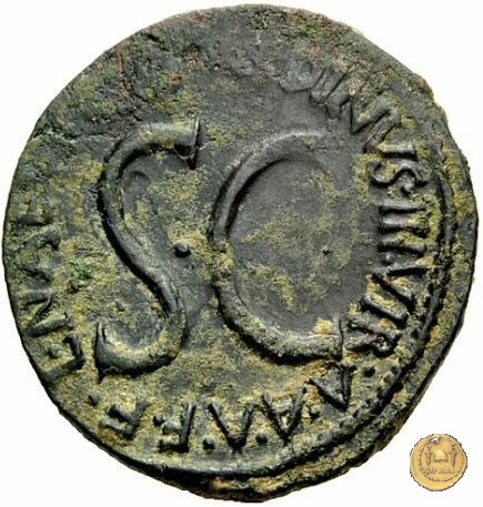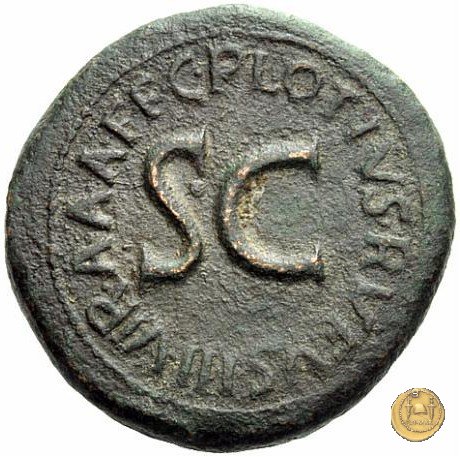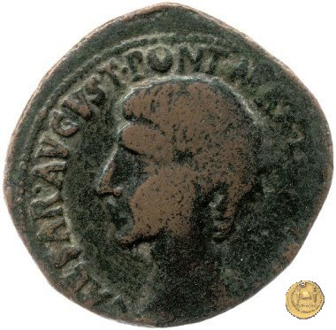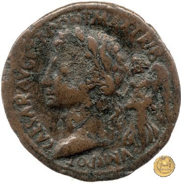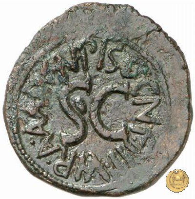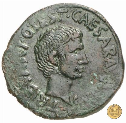 CLM24 Obverse: ![]() TI CAESAR DIVI ![]() AVG F AVGVSTVSTesta di Tiberio laureata e rivolta verso destra. Reverse: ![]() TR POT ![]() XXXVIIVittoria seduta su di un globo verso destra; in mano una ghirlanda; l'ala sinistra è visibile. |