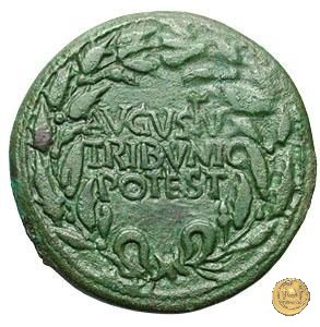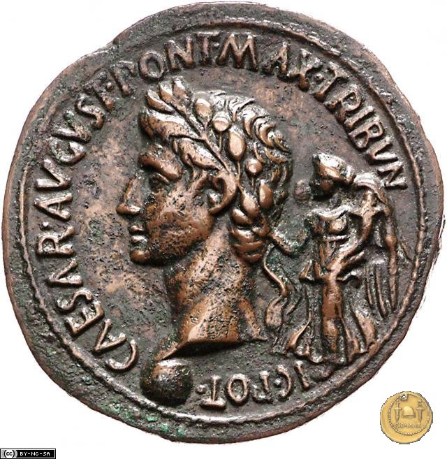 CLM10 Obverse: ![]() TI DIVI F ![]() AVGVSTVSTesta di Tiberio laureata rivolta verso destra. Reverse: ![]() TR POT ![]() XXIIVittoria seduta su di un globo verso destra; in mano una ghirlanda; l'ala sinistra non è visibile. | |