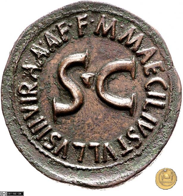 CLM651 Obverse: ↻ CAESAR AVGVST PONT MAX TRIB - VNIC POT La testa di Augusto, rivolta verso sinistra, incoronata da una Vittoria posta dietro di lui. Reverse: ↻ M MAECILIVS TVLLVS IIIVIR A A A F F; → S C • | |