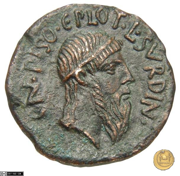 CLM653 Obverse: ![]() CAESAR DIVI F ![]() AVGVSTTesta di Augusto, laureata, rivolta verso destra. Reverse: ↻ CN PISO L SVRDIN C PLOT RVF Testa di Numa Pompilio, barbuta e diademata, rivolta verso destra. | |