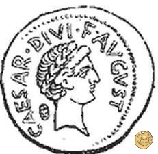CLM4 Obverse: ![]() TI CAESAR DIVI ![]() AVG F AVGVSTVSTesta di Tiberio laureata e rivolta verso destra. Reverse: ![]() DIVOS AVGVST ![]() DIVI FTesta di Augusto laureata rivolta verso destra; una stella al di sopra di esso. | |