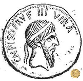 CLM654 Obverse: ↻ CAESAR DIVI F AVGVST Testa di Augusto, laureata e in piccolo formato, rivolta verso destra. Reverse: ↻ CN PISO C PLOT L SVRDIN Testa di Numa Pompilio, barbuta e diademata, rivolta verso destra. | |