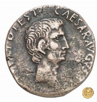 CLM627 Obverse: ![]() IMP CAE - SARTesta di Augusto rivolta verso destra. Reverse: → AVGVSTVS Un altare decorato con ghirlanda e sul quale sono scolpiti due cervi. | |