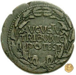 CLM15 Obverse: ![]() TI DIVI F ![]() AVGVSTVSTesta di Tiberio laureata rivolta verso destra. Reverse: ![]() TR POT ![]() XXVIIIVittoria seduta su di un globo verso destra; in mano una ghirlanda; l'ala sinistra è visibile. | |