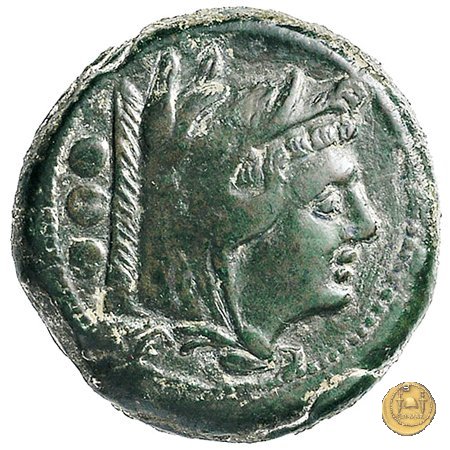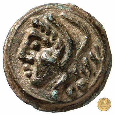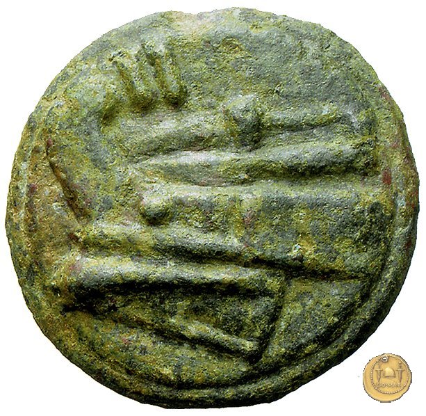 40/1 - Quadrante Dritto: Testa di Ercole a sinistra, con il capo avvolto nella pelle leonina. In basso, oppure dietro, tre globetti. Verso: Prora di nave a sinistra. In alto una spiga di grano; in basso tre globetti. | |