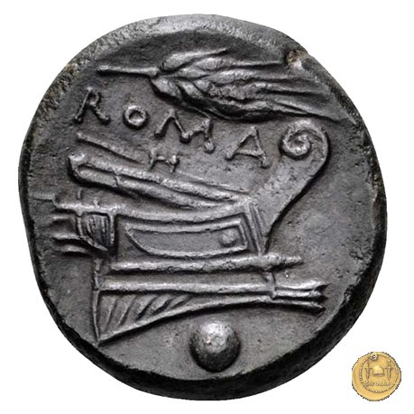 38/8 - Quartoncia Dritto: Testa di Roma a destra, con elmo attico. Verso: Prora di nave a destra. In alto: ROMA | |