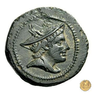 26/8 - Sestante Dritto: Testa con pileo di uno dei Dioscuri (Castore) a destra. Dietro una ghianda. Verso: Testa con pileo di uno dei Dioscuri (Castore) a sinistra. Dietro una ghianda. | |