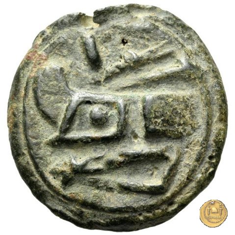 25/7 - Quadrante Dritto: Mano destra a palmo aperto. A destra un falcetto. A sinistra tre globetti. Verso: Due grani d'orzo. Al centro tre globetti. | |