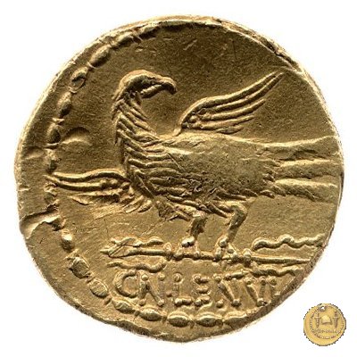 519/1 - aureo Cn. Domitius L.f.Cn.n. Ahenobarbus Dritto: AHENOBAR Testa maschile a destra. Verso: CN. DOMITIVS L. F. IMP. Tempio tetrastilo. Ai lati: NE PT | |