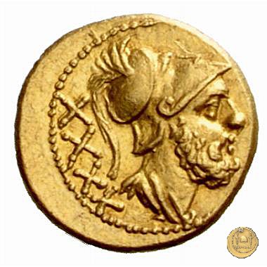 113/4 - triente Dritto: Testa elmata di Minerva a destra. In alto quattro globetti. Verso: Prora di nave a destra. In alto una stella; davanti quattro globetti; in basso: ROMA | |