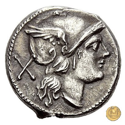 53/2 Dritto: Testa di Roma a destra, con elmo attico alato. Dietro: ![]() ![]() Verso: ROMA (in cornice lineare) I Dioscuri a cavallo verso destra, con lancia in resta; due stelle sopra i loro pilei. | |