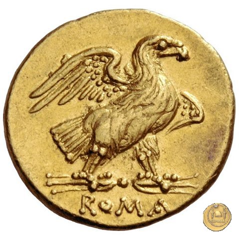 182/3 - semisse Dritto: Testa laureata di Saturno a destra. Dietro: S Verso: Prora di nave a destra. In alto un grifone e la testa di una lepre; davanti: S ; in basso: ROMA | |