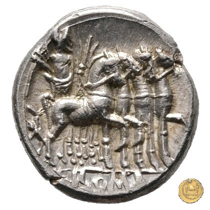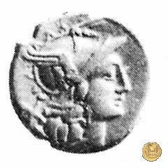 133/1 - vittoriato Cn. Baebius Tamphilus Dritto: Testa laureata di Giove a destra. Verso: TAMP - ROMA La Vittoria stante a destra, incorona un trofeo d'armi. | |
