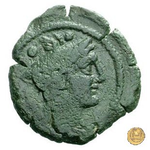 296/4 - quadrante Cn. Cornelius Blasio Dritto: Busto di Ercole visto di spalle, con la testa volta a sinistra; la clava sulla spalla destra. A destra tre globetti. Verso: CN. BLA SIO Prora di nave a destra. In alto: CN. BLA SIO ; davanti tre globetti; in basso: ROMA | |