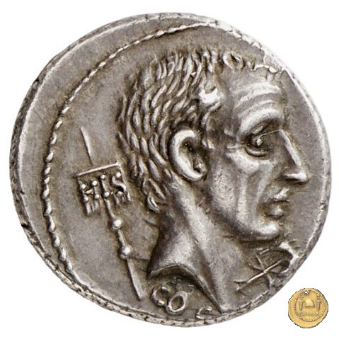 428/3 - denario Q. Cassius Longinus Dritto: Testa del Genius Populi Romani a destra, con scettro sulla spalla. Verso: Q. CASSIVS Aquila ad ali spiegate a destra su fulmine. A sinistra il lituus; a destra una brocca. | |
