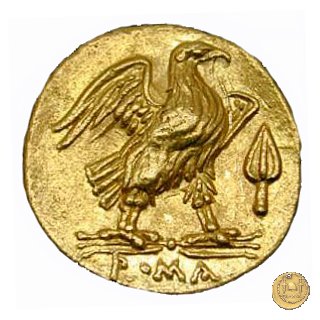 105/2 - LX assi - pentagramma (pentagram) Obverse: Testa barbata di Marte a destra, con elmo corinzio. In basso: LX Reverse: ROMA Aquila ad ali spiegate su fulmine a destra. A destra un pentagramma. | |
