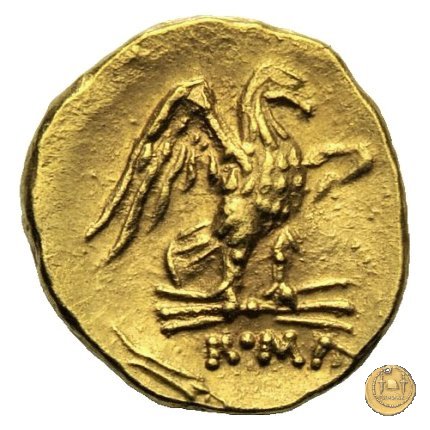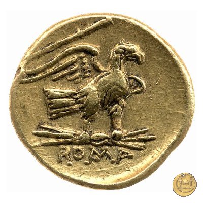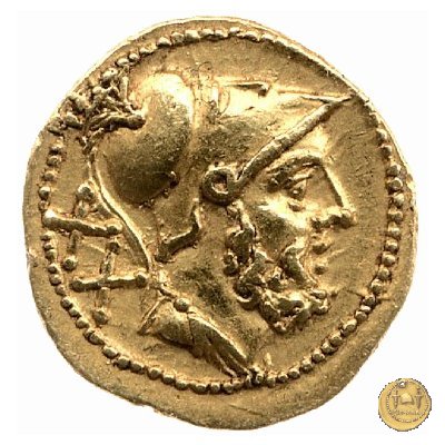 72/3 - spiga di grano (corn-ear) Obverse: Testa di Roma a destra, con elmo attico alato. Dietro: ![]() ![]() Reverse: ROMA I Dioscuri a cavallo verso destra, con lancia in resta; due stelle sopra i loro pilei. Sotto una spiga di grano. | |