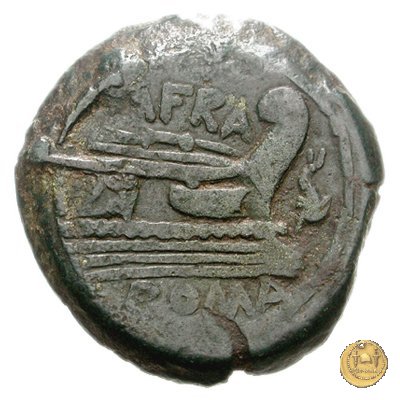 206/2 - asse Spurius Afranius Dritto: Testa laureata di Giano. In alto: I Verso: SAFRA Prora di nave a destra. In alto: SAFRA ; davanti un delfino; in basso: ROMA | |