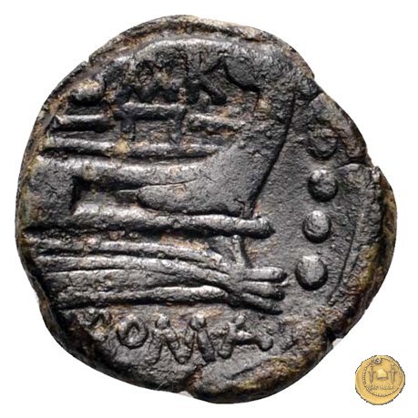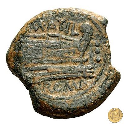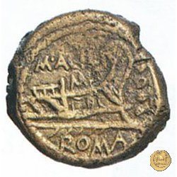 271/3 - quadrante Mn. Acilius Balbus Dritto: Testa di Ercole a destra, con il capo avvolto nella pelle leonina. Dietro tre globetti. Verso: MN . ACIL Prora di nave a destra. In alto: MN . ACIL ; davanti tre globetti; in basso: ROMA | |