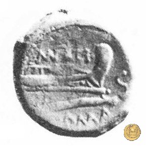364/1 - denario Q. Antonius Balbus Dritto: S. C Testa laureata di Giove a destra. Verso: Q. ANT O. BAL B - PR La Vittoria su quadriga verso destra; tiene le redini e un ramo di palma con la mano sinistra, la corona con la destra. | |