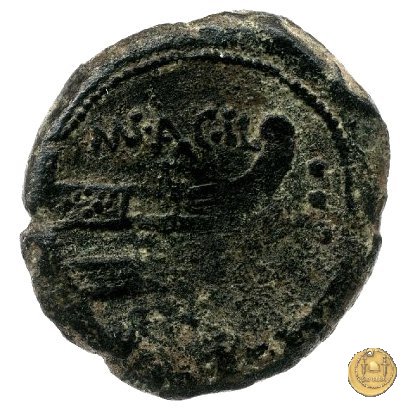 271/2 - semisse Mn. Acilius Balbus Dritto: Testa laureata di Saturno a destra. Dietro: S (retrograda) Verso: MN . ACI Prora di nave a destra. In alto: MN . ACI ; davanti: S ; in basso: ROMA | |