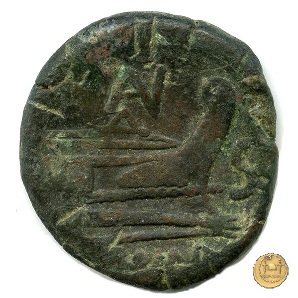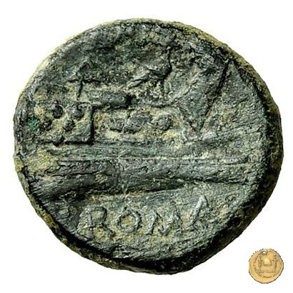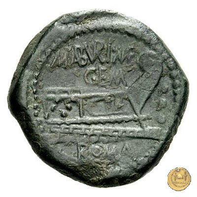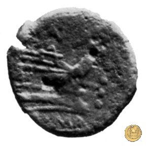250/3 - oncia M. Aburius M.f. Geminus Dritto: Testa elmata di Roma a destra. Dietro un globetto. Verso: M. AB VR I. MF / GEM Prora di nave a destra. In alto: M. AB VR I. MF / GEM ; davanti un globetto; in basso: ROMA | |
