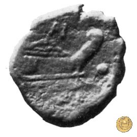 206/4 - triente Spurius Afranius Dritto: Testa elmata di Minerva a destra. In alto quattro globetti. Verso: SAFRA Prora di nave a destra. In alto: SAFRA ; davanti un delfino; in basso: ROMA | |
