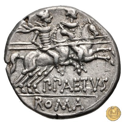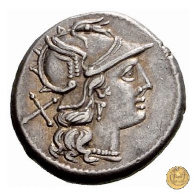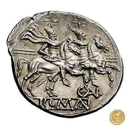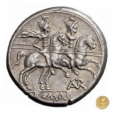 133/2 - denario Cn. Baebius Tamphilus Dritto: Testa di Roma a destra, con elmo attico alato. Dietro: ![]() ![]() Verso: TAMP - ROMA I Dioscuri a cavallo verso destra. | |