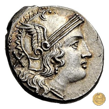133/3 - denario Cn. Baebius Tamphilus Dritto: Testa di Roma a destra, con elmo attico alato. Dietro: ![]() ![]() Verso: TAMP - ROMA La Luna su biga verso destra; tiene le redini con entrambe le mani. | |