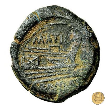 214/2 - asse M. Atilius Saranus Dritto: Testa laureata di Giano. In alto: I Verso: M. ATIL(I) Prora di nave a destra. In alto: M. ATILI oppure M. ATIL ; davanti: I ; in basso: ROMA | |