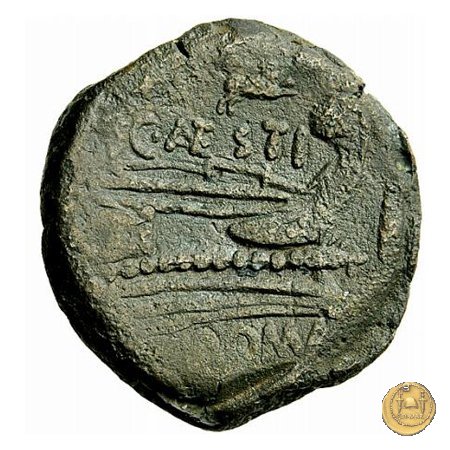219/2 - asse C. Antestius Dritto: Testa laureata di Giano. In alto: I Verso: C. ANTE STI Prora di nave a destra. In alto un cagnolino e C. ANTE STI ; davanti: I ; in basso: ROMA | |