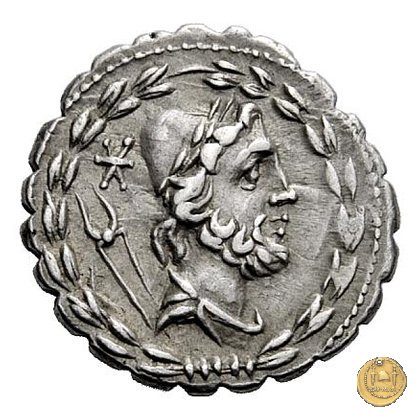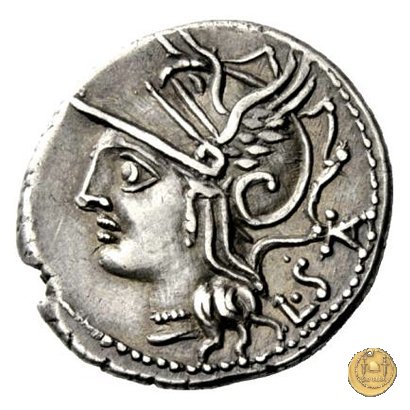 317/1 - denario L. Appuleius Saturninus Dritto: Testa di Roma a sinistra, con elmo attico alato. Dietro una lettera di controllo. Verso: L. SAT Testa di Roma a sinistra, con elmo attico alato. | |