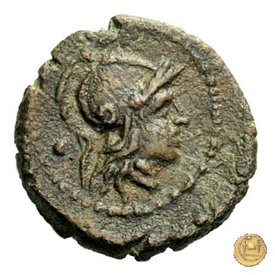 244/2 - triente C. Aburius Geminus Dritto: Testa elmata di Minerva a destra. Dietro quattro globetti. Verso: C. AB VR I / GEM Prora di nave a destra. In alto: C. AB VR I / GEM ; davanti quattro globetti; in basso: ROMA | |