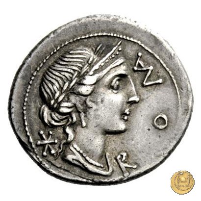 513/2 - denario M. Arrius Secundus Dritto: M. ARRIVS - SECVNDVS Testa maschile a destra. Verso: Corona con nastri, hasta pura e phalerae (dona militaria). | |