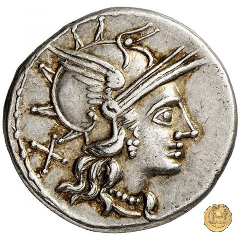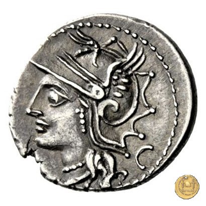219/1 - denario C. Antestius Dritto: Testa di Roma a destra, con elmo attico alato. Dietro un cagnolino. Davanti: ![]() ![]() Verso: C. ANTE STI - ROMA I Dioscuri a cavallo verso destra. | |