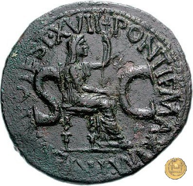CLM70 Obverse: ↻ TI CAESAR DIVI AVG F AVGVSTVS IMP VII Testa di Tiberio rivolta verso destra. Reverse: ↻ PONTIF MAXIM TRIBVN POTEST XXII; → S - C Figura femminile, drappeggiata e seduta verso destra; nella mano destra una patera, nella sinistra uno scettro. | |