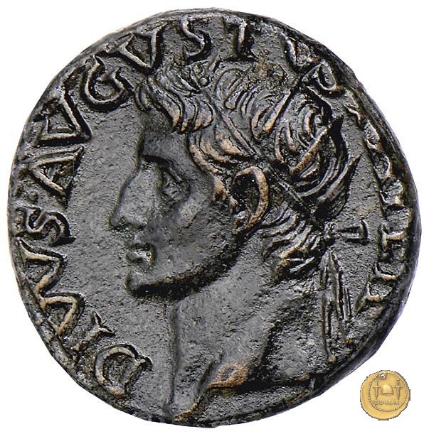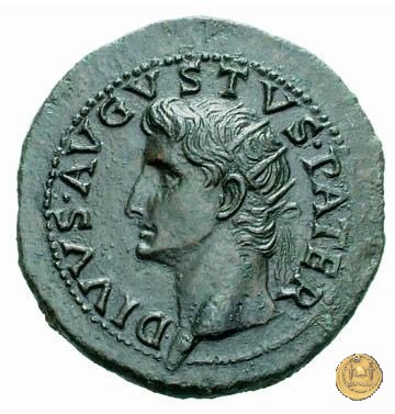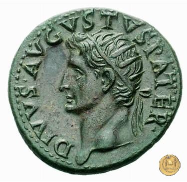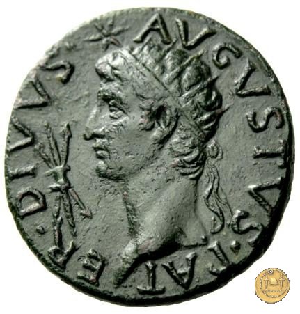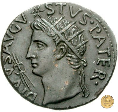 CLM63 Obverse: TI CAESAR AVGVSTVS Testa di Tiberio rivolta verso sinistra. Reverse: DIVVS AVGVSTVS PATER Testa di Augusto radiata rivolta verso destra; sopra una stella, di fronte un fulmine. | |