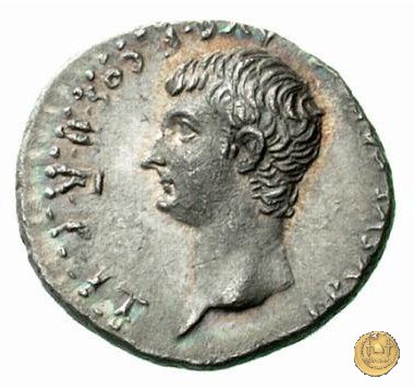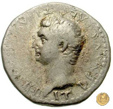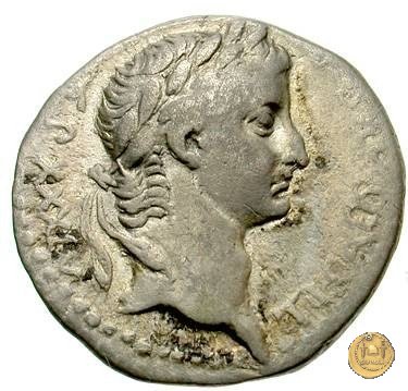 CLM27 Obverse: ![]() TI CAESAR DIVI ![]() AVG F AVGVSTVSTesta di Tiberio laureata e rivolta verso destra. Reverse: ![]() TR POT XVII; → IMP VII (esergo)Tiberio, laureato, alla guida di una quadriga rivolta verso destra. Nella mano destra un ramo d'alloro e nella sinistra uno scettro con aquila. | |