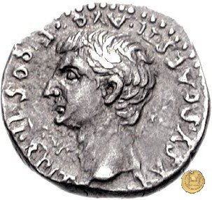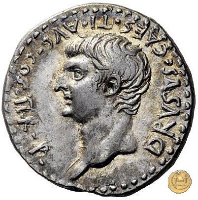 CLM2 Obverse: ![]() TI CAESAR DIVI ![]() AVG F AVGVSTVSTesta di Tiberio laureata e rivolta verso destra. Reverse: ![]() TR POT XVII; → IMP VII (esergo)Tiberio, laureato, alla guida di una quadriga rivolta verso destra. Nella mano destra un ramo d'alloro e nella sinistra uno scettro con aquila. | |