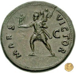CLM116 Obverse: ↻ A VITELLIVS GERMANICVS IMP AVG P M TR P Busto di Vitellio, laureato e drappeggiato, rivolto verso destra. Reverse: ![]() MARS ![]() VICTOR; → S - CMarte, elmato e in abbigliamento militare, con parazonium, che avanza verso sinistra; nella mano destra una Vittoria, nella sinistra un trofeo poggiato sulla spalla. | |