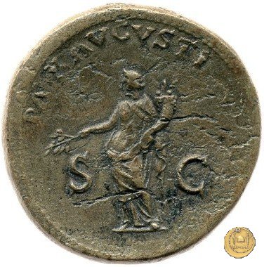 CLM119 Obverse: ↻ A VITELLIVS GERMANICVS IMP AVG P M TR P Busto di Vitellio, laureato e drappeggiato, rivolto verso destra. Reverse: ![]() PAX ![]() AVGVSTI; → S - CLa Pax, drappeggiata, in piedi, rivolta verso sinistra che tiene un ramo e una cornucopia. | |