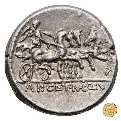 43408 335/10 - denario A. Postumius Sp.f. Albinus (96-92 BC - Roma)