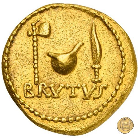 500/6 - aureo M. Iunius Brutus / L. Cornelius Lentulus Spinther (43-42 BC - Itinerante con Brutus) Bertolami 67 - lotto 357 (R) Verso | Bertolami Fine Arts | Sun 19/12/21 - 09:05 | ||